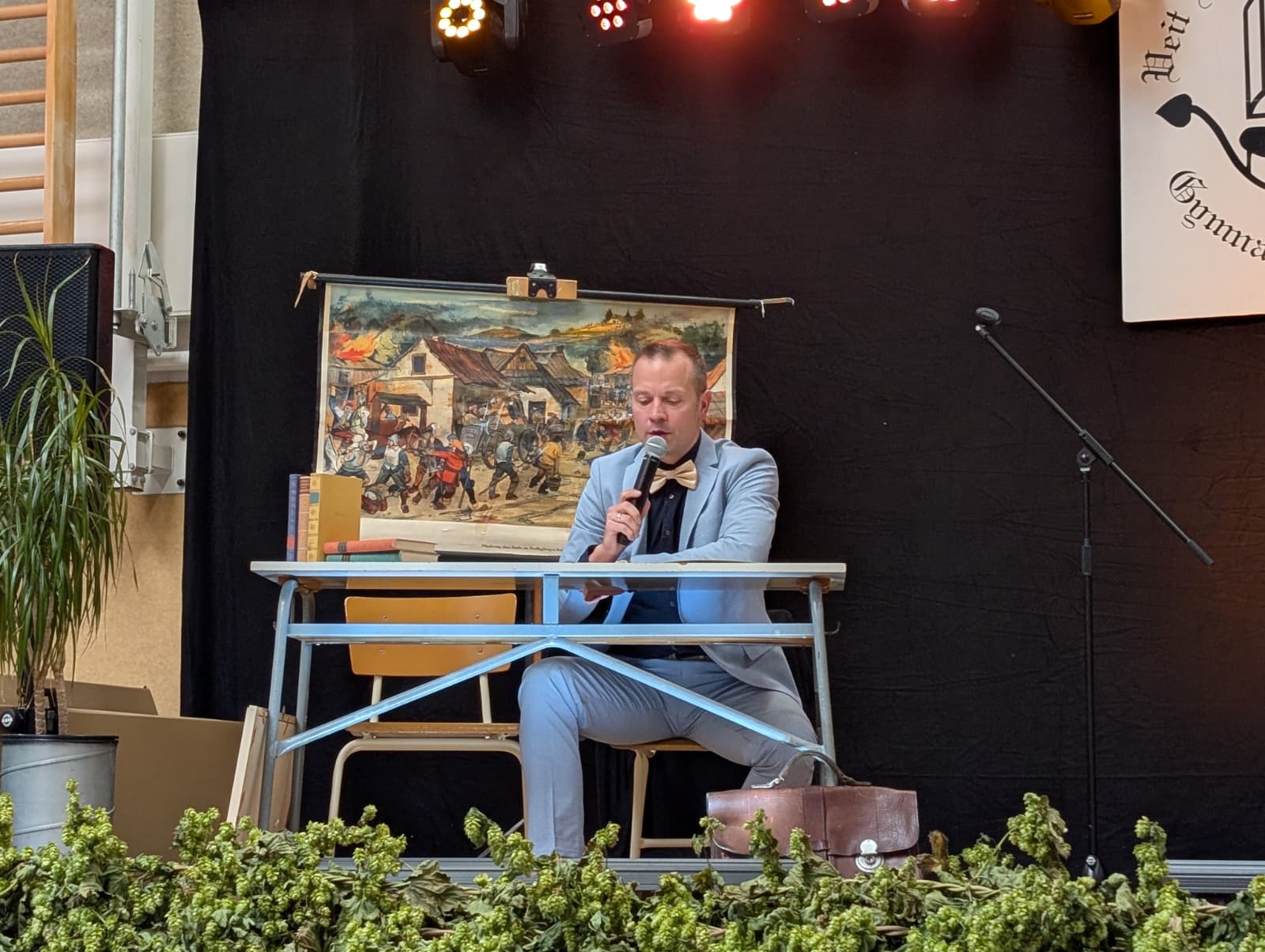Nach der musikalischen Eröffnung durch den Schulchor begrüßte der Schulleiter die Gäste und würdigte in seiner Ansprache die bleibende Verbundenheit der Absolventinnen und Absolventen mit ihrer Schule. Besonders bewegt waren die Anwesenden vom Besuch der ältesten Abiturientin. Bereits 1955 hatte sie ihr Abitur am Gymnasium abgelegt und feierte nun mit 88 Jahren ein herzliches Wiedersehen.