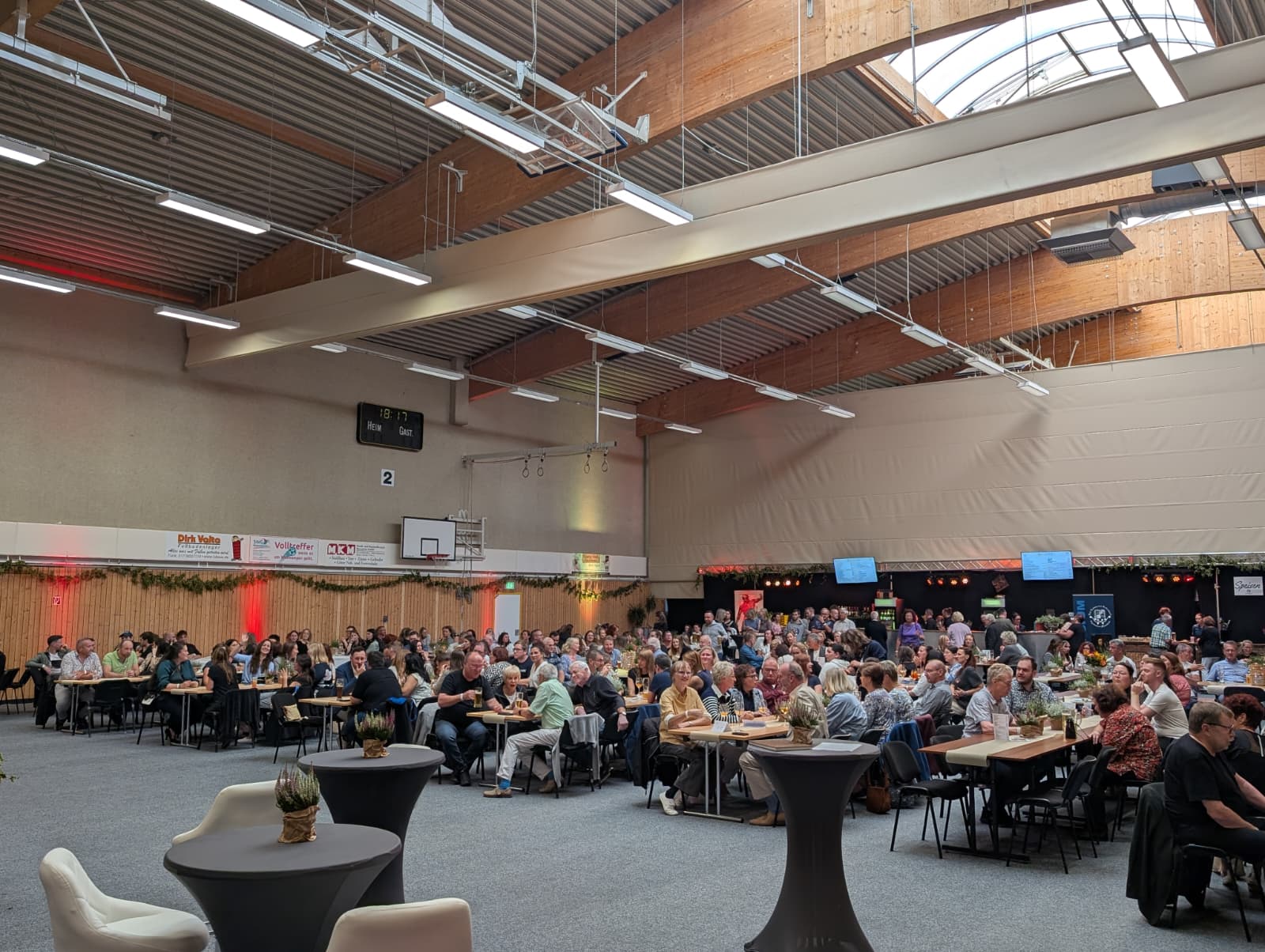 Rund 350 ehemalige Schülerinnen und Schüler sowie Lehrerinnen und Lehrer des Gymnasiums kamen am Samstag, dem 13.9.2025, in der Schnaudertalhalle zusammen, um beim Absolvententreffen Erinnerungen aufleben zu lassen und neue Kontakte zu knüpfen. Den Auftakt bildeten mehrere Schulführungen am Nachmittag, die auf reges Interesse stießen und viele Erinnerungen an Klassenzimmer und schulische Erlebnisse weckten.
