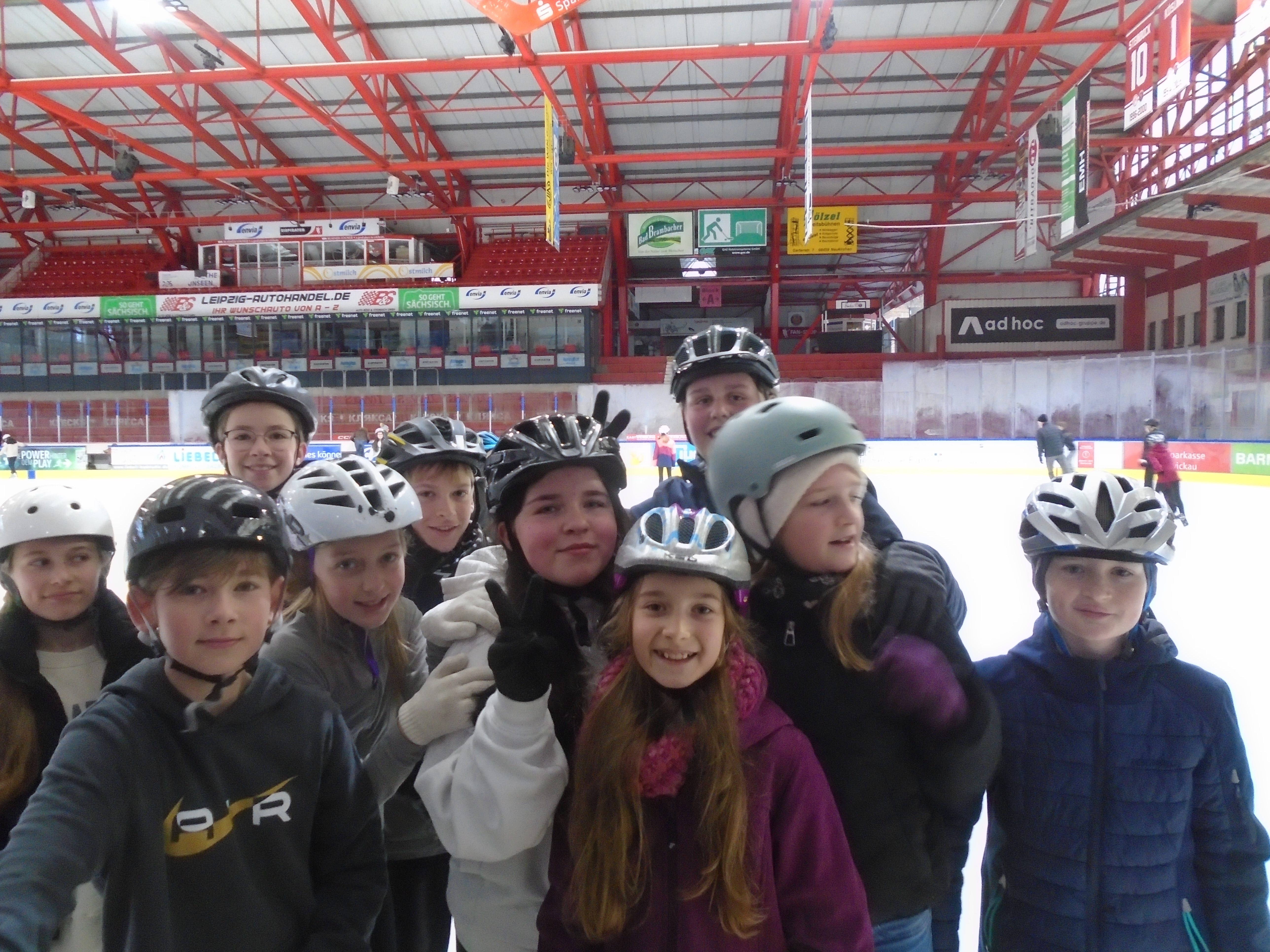 Am 10. Dezember machten sich die Klassen 6a und 6b auf den Weg nach Crimmitschau, um hier im Rahmen unserer Kooperation mit den Eispiraten etwas über den Eishockeysport zu erfahren. Sie erlebten eine imposante Stadionführung, konnten ihr Können beim Eislaufen unter Beweis stellen, genossen heißen Kakao mit leckeren Plätzchen und machten sich mit Geschenken eine Freude.