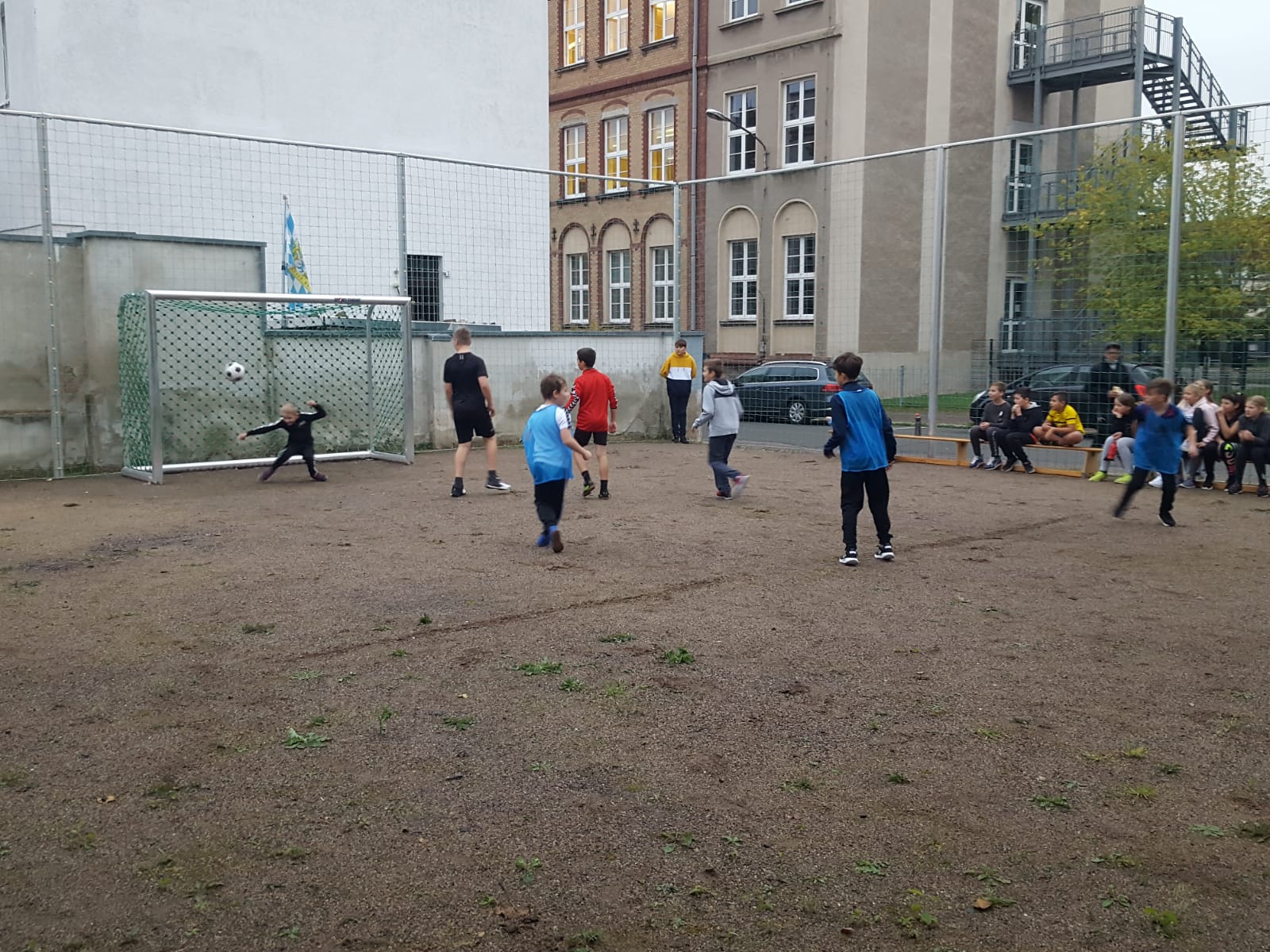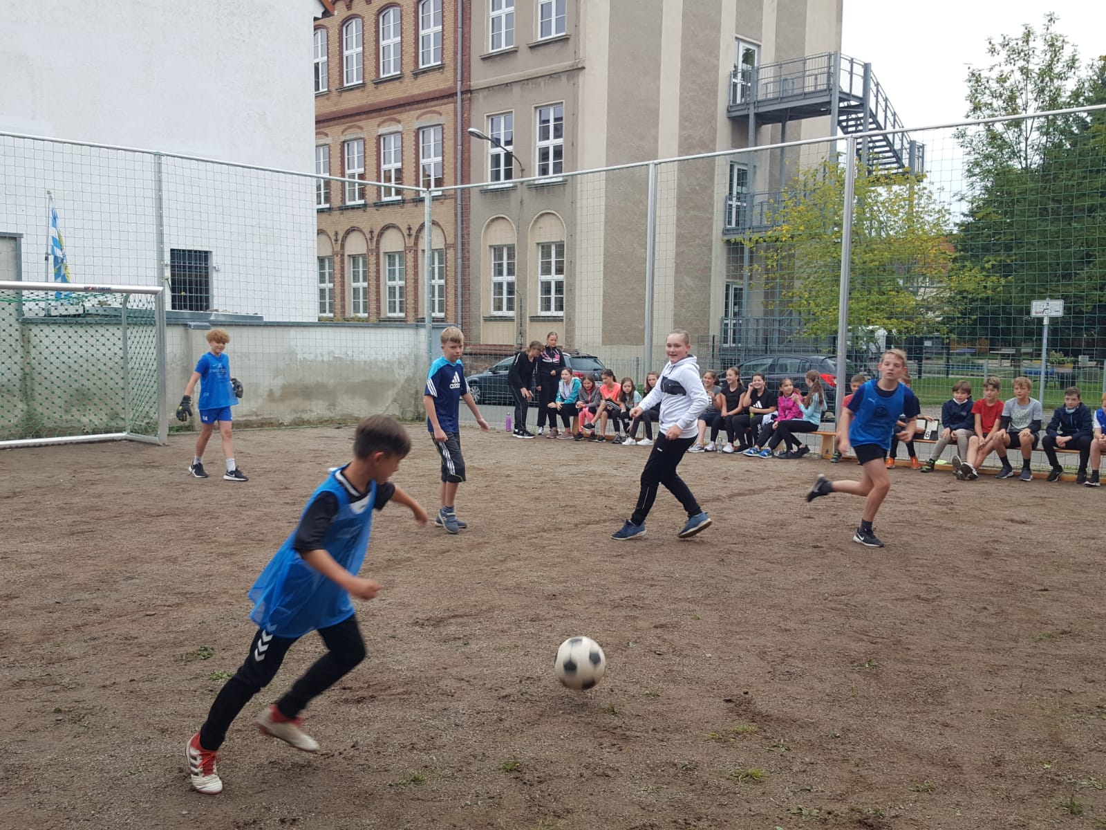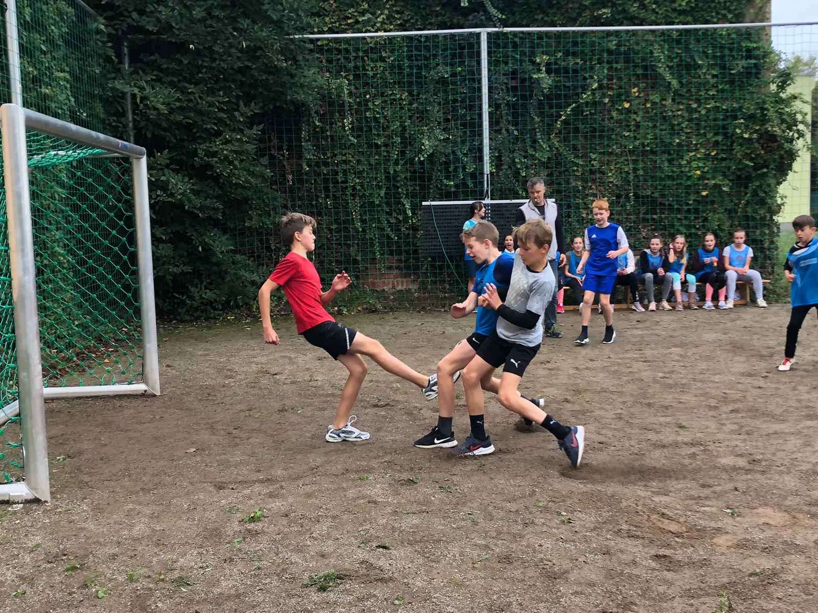 Anlässlich dieses einzigartigen Ereignisses führten die Klassen 5 bis 7 ein Eröffnungsturnier im Fußball durch. Mit großem Eifer und Einsatz stürzten sich die Spieler/innen auf den Ball. Auch auf der "Banktribüne" wurde lauthals angefeuert und mitgefiebert. Am Ende hatten die Klassen 5a, 6a und 7b gegenüber ihrer Parallelklasse die Nase vorn.