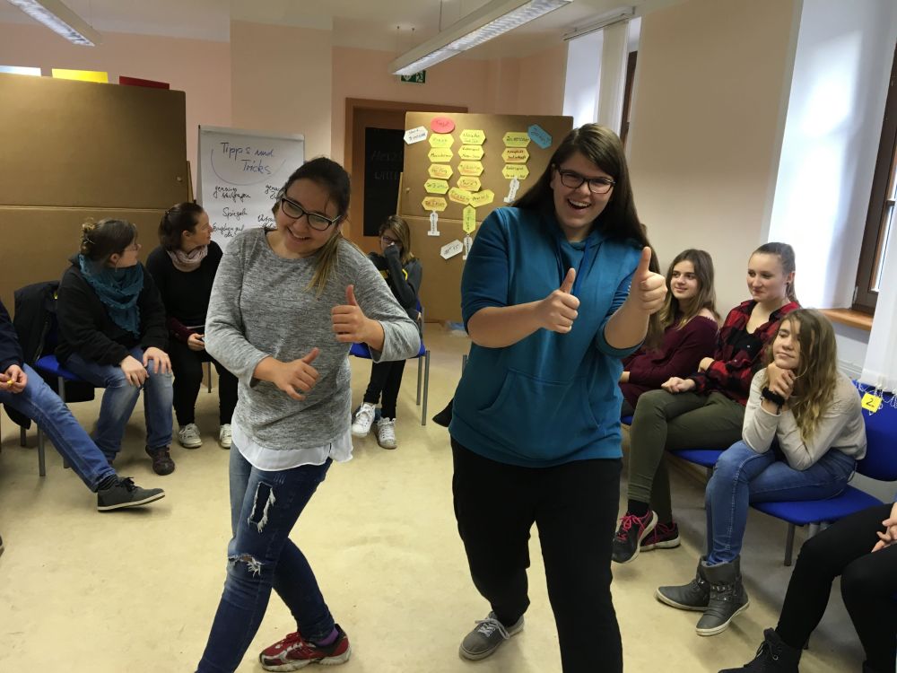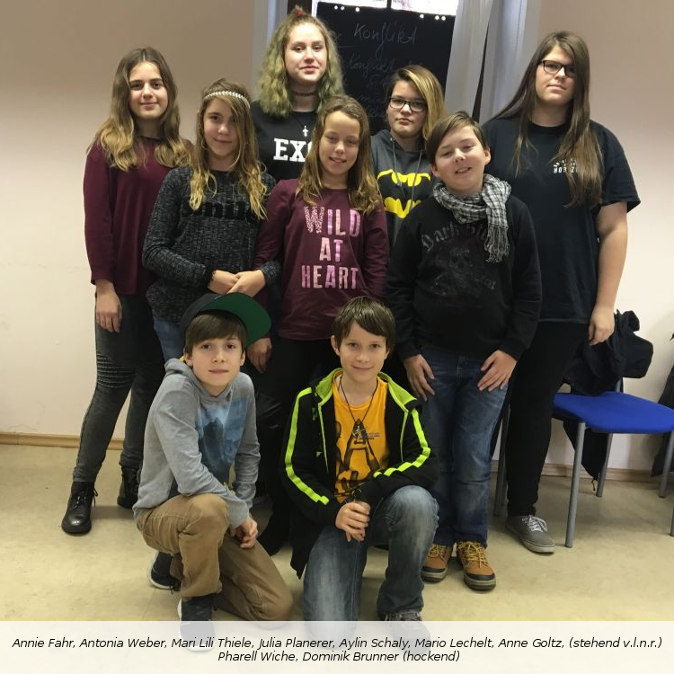 Die Teilnehmer aus vier verschiedenen Klassenstufen verstanden sich vom Kennenlernspiel am ersten Vormittag an ausgezeichnet und hatten keinerlei Probleme, Theorie und Praxis der Streitschlichtung gemeinsam zu verinnerlichen. In zahlreichen Rollenspielen wurden diverse Fallbeispiele durchgesprochen und die einzelnen Phasen der Streitschlichtung eingeübt. Neben aller Ernsthaftigkeit und Konzentration auf die Inhalte der Veranstaltung hatten wir beim gemeinsamen Miteinander jede Menge Spaß und viel zu lachen. Am Ende der Ausbildung erhielten wir alle ein Zertifikat und sind nun qualifiziert, aktiv dazu beizutragen, dass an unseren Schulen ein harmonisches Lernklima herrscht, in dem entstehende Konflikte friedlich und konstruktiv gelöst werden können.
