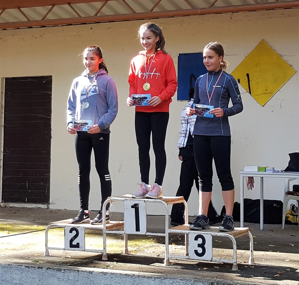 es sehr knapp zu. Zoe erlief sich die Bronzemedaille, knapp gefolgt von Annalena Schirmer und Klara Reimann, welche mit Platz vier und fünf sehr zufrieden sein können. Ebenso können Silas Maeser und Dave Reinhold in der AK 10m mit einem 9. und 11. Platz zufrieden sein, denn sie kämpften im größten Starterfeld des Tages gegen 32 Läufer. Kai Stanik, 2016 noch Silbermedaillengewinner, musste sich mit dem vierten Platz zufrieden geben, obwohl der Dritte nur zwei Meter vor ihm ins Ziel lief.
