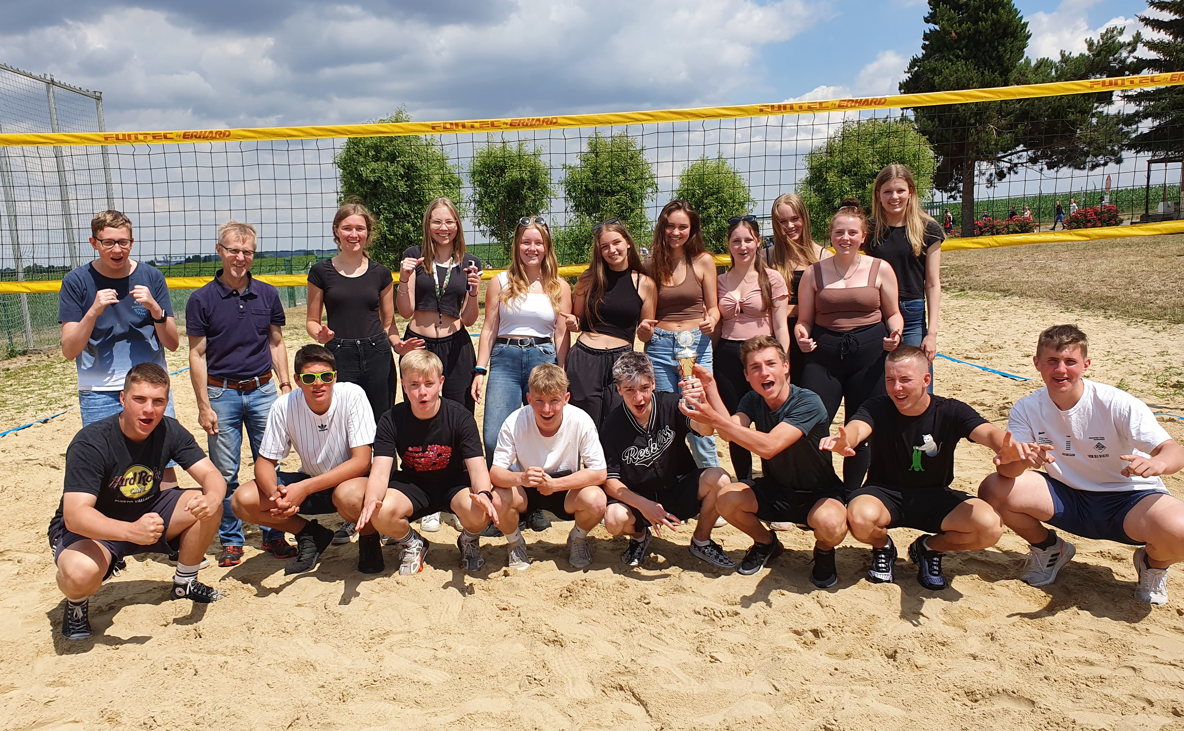 17 Mannschaften hatten sich am 6.5. 2022 zum Beachvolleyball in Gleina zusammengefunden. Darunter auch die Klasse 10a (verstärkt mit Finn und Maximilian aus der 10b).