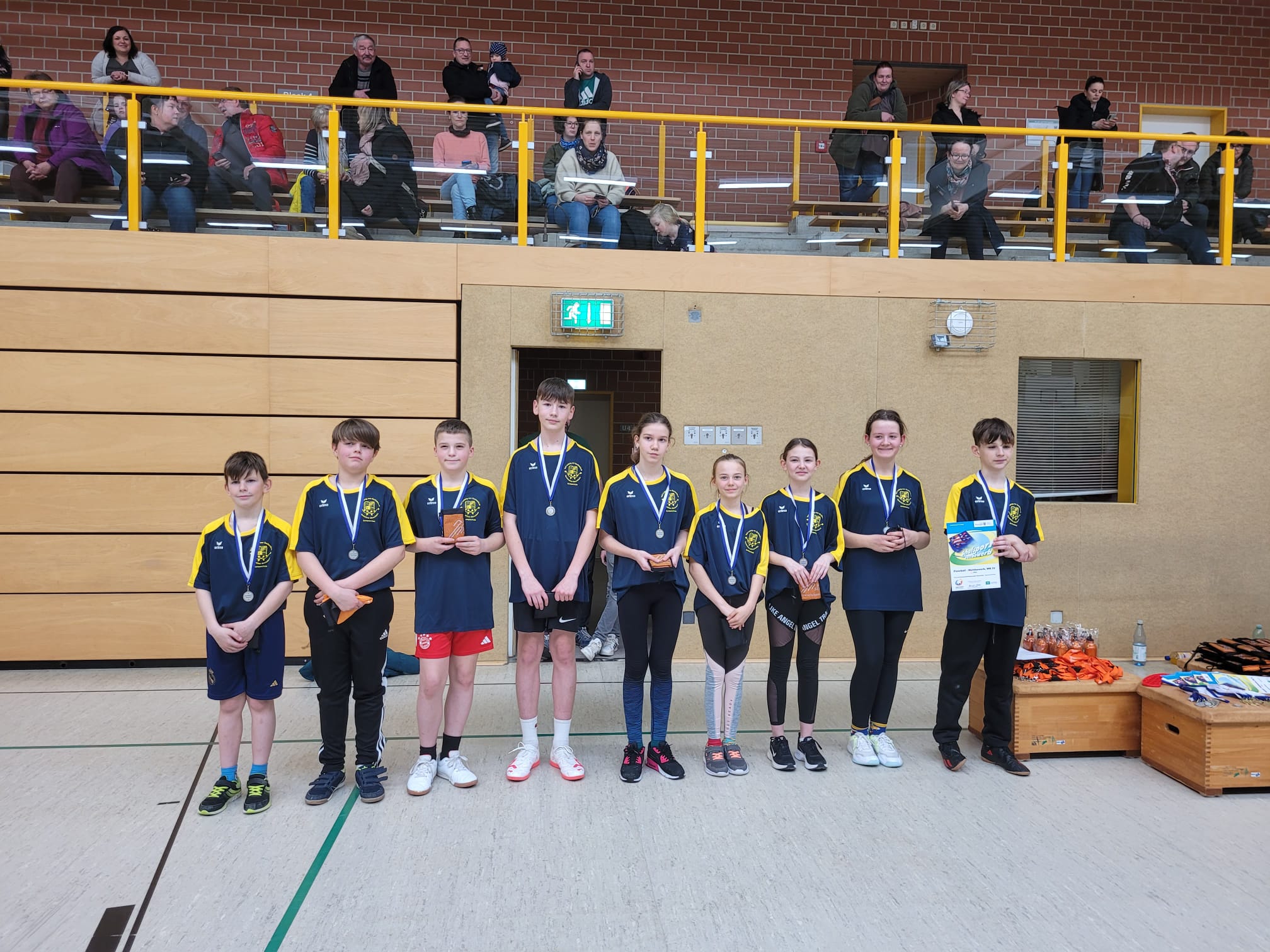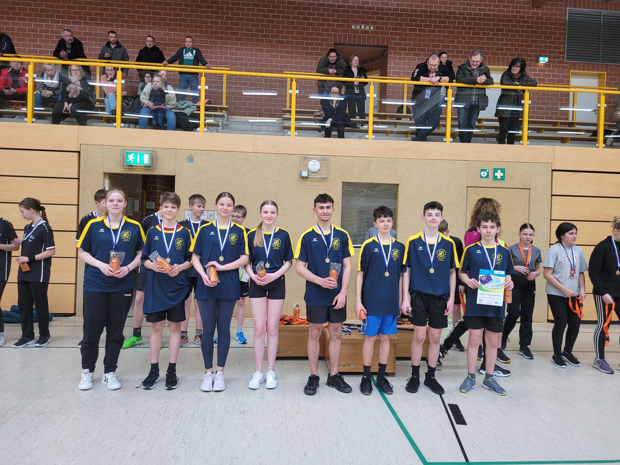Zwischen 13.30Uhr und 14.00Uhr versammelten sich die Teams aus Altenburg, Treben, Meuselwitz und Jena in der Schnaudertalhalle. Schnell waren alle umgezogen. Voller Vorfreude und in positiver Aufregung erwärmten sich die Teams. Vorsichtig beäugte man sich gegenseitig, um zu erfahren, wer denn der potentielle Gegner sein könnte. Nach einer kurzen Eröffnung durften die Teams dann auf zwei Spielfeldern und in zwei Altersklassen zeigen, was sie draufhaben. Nach vielen fairen und sportlich sehr spannenden Wettkämpfen konnte sich in der Wettkampfklasse 3 das Seckendorffgymnasium aus Meuselwitz knapp vor dem Lerchenberggymnasium aus Altenburg und der Regelschule aus Treben durchsetzen. In der Wettkampfklasse 4 dominierte das Lerchenberggymnasium aus Altenburg. Ungeschlagen belegte es, vor dem Seckendorffgymnasium aus Meuselwitz, der Montessorischule aus Jena und der Regelschule aus Treben, den ersten Platz.