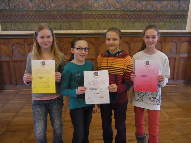 Gespielt wurde nach dem Schweizer System, wonach fünf Runden mit 20 Minuten Bedenkzeit gespielt werden. Unsere vier Mädels schlugen sich sehr wacker. Sowohl Jessica Meyer, Lea Jubelt als auch Tina Neumann mussten sich nur der späteren Siegerin geschlagen geben und erzielten 4 Siegpunkte. Im 20-köpfigen Starterfeld bedeutete das immerhin die Plätze 2 bis 4! Auch Lisa Häupl trug mit ihren drei Punkten und dem siebten Platz zum guten Mannschaftsergebnis und zum Sieg in der Mannschaftswertung bei!