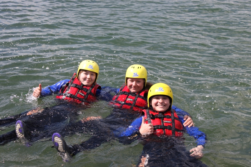 Nach der obligatorischen Belehrung ging es sofort ins Wasser zum Erlernen der Techniken beim Paddeln oder dem Üben der Kommandos des Guides, welcher vom Kanuparkt gestellt wurde. Dazu zählte auch das Retten von „Über-Bord-Gegangener“. Jeder musste ins Wasser und sich retten lassen. Bei 14°C Wassertemperatur wurde, trotz Neoprenanzug, jeder munter.