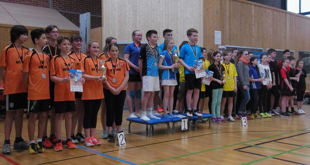 Einen schönen Erfolg errang unsere Schulmannschaft Badminton in Jena. Nach klaren Siegen gegen Themar (7:0) und Apolda (6:1) ging es gegen Ilmenau um Platz zwei. Martin mit Hannes und Jasmin mit Laura konnten ihre Doppel gewinnen. Leider gingen die Einzel von William, Nick und Laura verloren.
