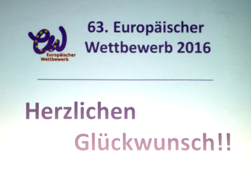 Tina Neumann war in diesem Schuljahr eine von ca. 80 000 Schülerinnen und Schülern, die am 63. Europäischen Wettbewerb teilnahmen. Allein in Thüringen reichten 2479 Teilnehmer ihre Arbeiten ein, die kritisch von der Landesjury bewertet wurden.