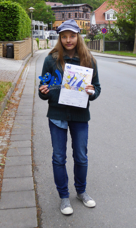 Am Dienstag, dem 24.05.2016, fand in Rudolstadt die Auszeichnungsveranstaltung statt, zu der sie von ihrer Kunst- und Klassenlehrerin Frau Osiewacz begleitet wurde.