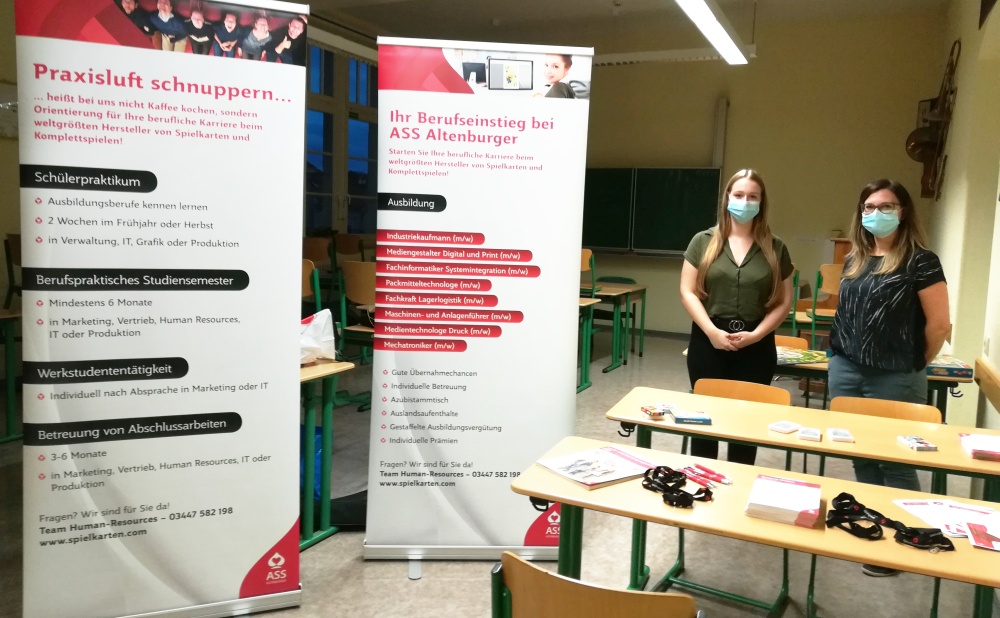 Frau Kertscher (ASS Spielkartenfabrik Altenburg GmbH) gab direkt das Wort an ihre aktuell Studierende. Frau Schwertner begann 2020 eine Ausbildung zur Industriekauffrau bei der ASS und wechselte 2021 zum Dualen Studium Betriebswirtschaft mit Schwerpunkt Personalmanagement. Sie stellte am eigenen Beispiel sehr anschaulich die Vor- und Nachteile dar, den Bewerbungsablauf an der iba in Leipzig, Studienkosten und die Vereinbarkeit von Uni, Arbeit und Freizeit. Fazit: Ein gutes Selbstmanagement ist das A und O beim dualen Studieren.