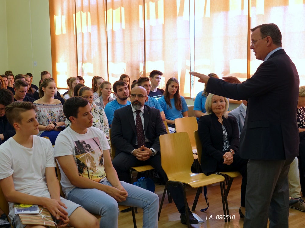 Am 09. Mai 2018 weilte Herr Bodo Ramelow anlässlich der Europawoche zu einem Projekttag an unserem Gymnasium. Schüler und Lehrer erlebten einen sehr interessanten Vormittag.