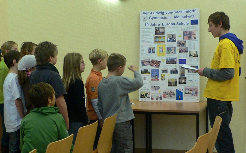 Wie in jedem Jahr besuchten im Dezember Grundschüler aus Meuselwitz, Lucka, Wintersdorf,Kayna , Posa und Rositz unser Gymnasium, um zu erfahren, was eine Europaschule ist. Die Grundschultage,die bereits eine gute Tradition sind, wurden in diesem Jahr von den Schülern der 8. und 10. Klassen für die „ kleinen Besucher“ gestaltet. Führungen durch unsere Schule, Schnupperunterricht in Physik - hier kamen vor allem die experimentierfreudigen Besucher auf ihre Kosten -, Kurzbesuche in Musik, Geografie und Mathematik vermittelten einen Einblick in unseren Schulalltag.