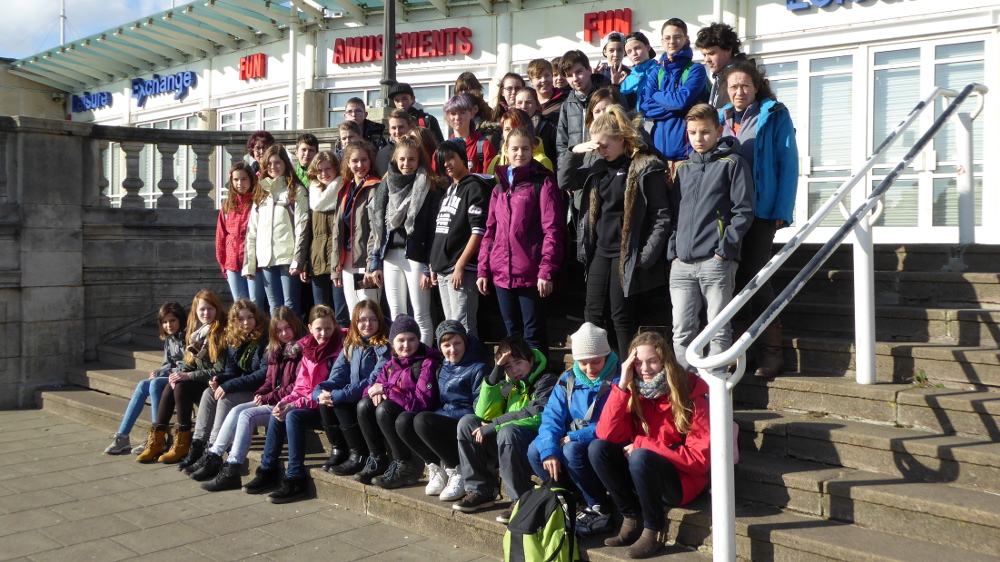 Am 4. Tag unserer Englandreise fuhren wir, die Klassen 7a und 7b, nach dem Sprachunterricht nach Brighton. Nach 2 Stunden Busfahrt waren wir endlich da. Als wir ausgestiegen sind, schien die Sonne und unsere Lehrer bestanden auf ein Klassenfoto.