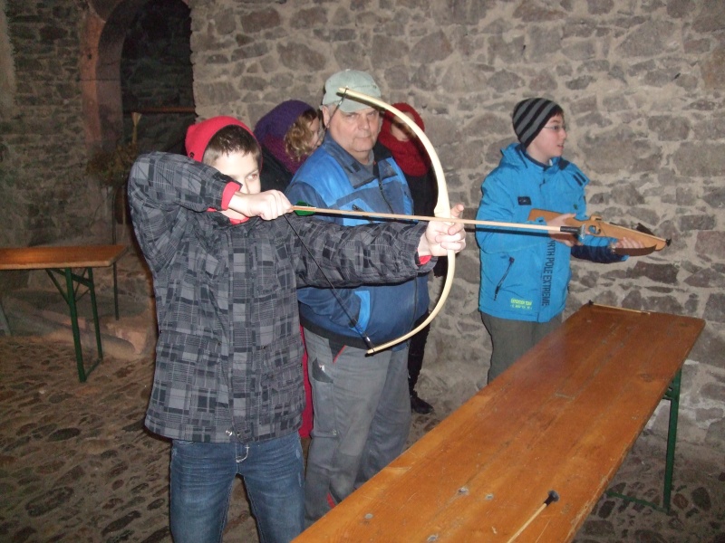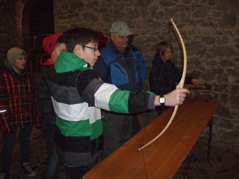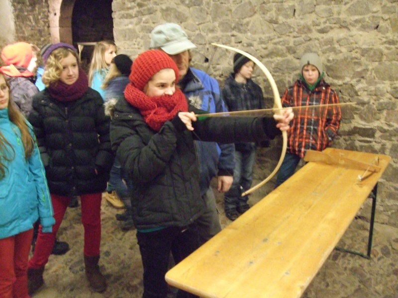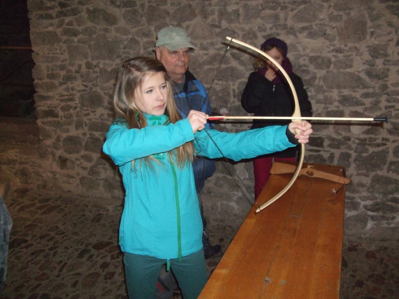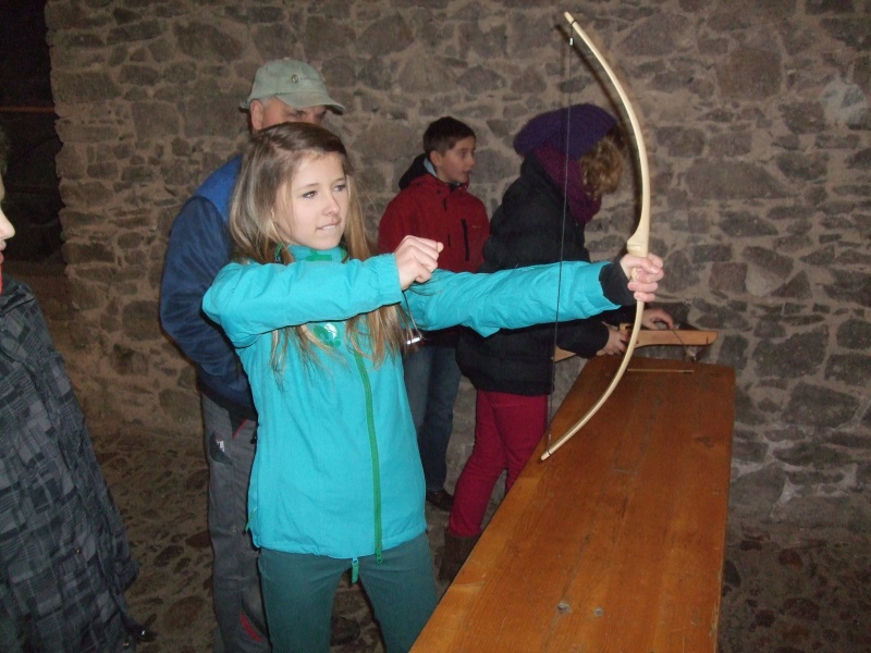 Zum Schluss zeigte man uns, wie man mit Pfeil und Bogen und der Armbrust umgeht und wir durften dies auch selbst einmal versuchen. Josi hat besonders das Armbrustschießen gefallen und und sie zeigte große Treffsicherheit.