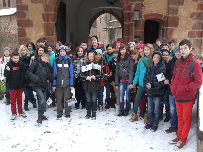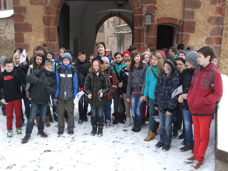 Am 7.50 Uhr starteten wir mit einer einstündigen Busfahrt. Dann kamen wir auf der Burg Kriebstein, der schönsten Burg Sachsens, an (und sie war auch wirklich schön). Dort wurden wir von unseren Lehrern Frau Bayer, Frau Jungowitz und Herr Schmidt in drei Gruppen aufgeteilt.