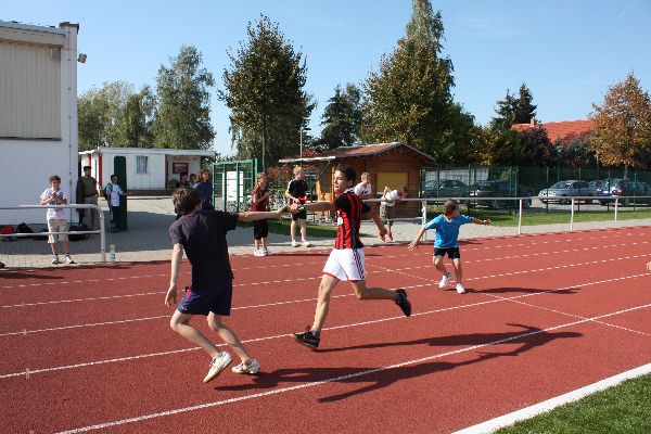 Für diesen Tag hatte die Schulleitung einige Projektstationen im Schulhaus und der nahe gelegen Turnhalle erstellt. Doch auf Grund des miserablen Wetters musste man umorganisieren. So verlagerte sich der gesamte Ablauf in das großräumige Schulhaus und in die nah gelegene Turnhalle. Die Aufgabenbereiche waren wiederum sehr vielseitig. Die Kinder mussten ihre Anschrift stempeln, Briefmarken verschiedenen Ländern zuordnen, gemeinsam in einem riesigen Sack hüpfen, Pakete packen und diese dann über einen Parcours sicher ins Ziel bringen. In der Nachmittagsbetreuung konnten wir dann den Film „Mr. Bean macht Urlaub“ sehen. Der Tag bot mir einen guten Einblick in das Berufsfeld & ich muss sagen, dass es nicht leicht ist, die unterschiedlichen Charaktere der Kinder, insbesondere der lernbehinderten Schüler, unter einen Nenner zu bringen.
