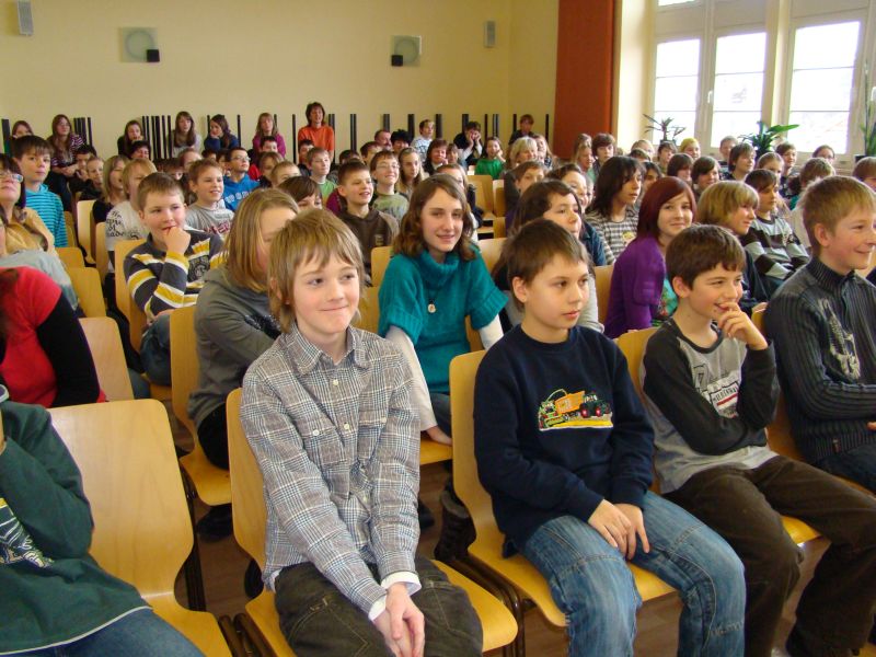 Die Klasse 5a stellte ihren Parallelklassen das gleichnamige Buch von Max von der Grün vor. Die Schüler hielten einen Vortrag, hatten mit selbst gemalten Bildern eine Powerpoint-präsentation vorbereitet, spielten und lasen kleine Szenen und zeigten uns zwei kleine Filmausschnitte. Anschließend wurde mit einem Quiz überprüft, ob wir aufmerksam zugehört hatten.