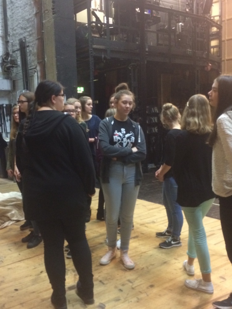Am 21. März 2017 fuhren wir, der Kurs Darstellen und Gestalten Klasse 9 des Veit-Ludwig-von-Seckendorff-Gymnasiums Meuselwitz, mit Frau Bayer nach Leipzig. Dort angekommen, gingen wir zum Schauspielhaus und erhielten eine Theater-Führung mit Jennifer Gaden, der Theaterpädagogin des Hauses. Sie begleitete uns hinter die Kulissen und zeigte uns Maske, Garderobe, Bühne etc. In der Künstlergarderobe trafen wir den Schauspieler Brian Völkner zu einem angeregten Plausch über seine Ausbildung und die Höhen und Tiefen dieses sehr kreativen Berufs.