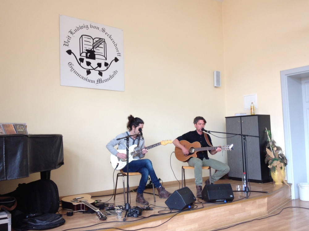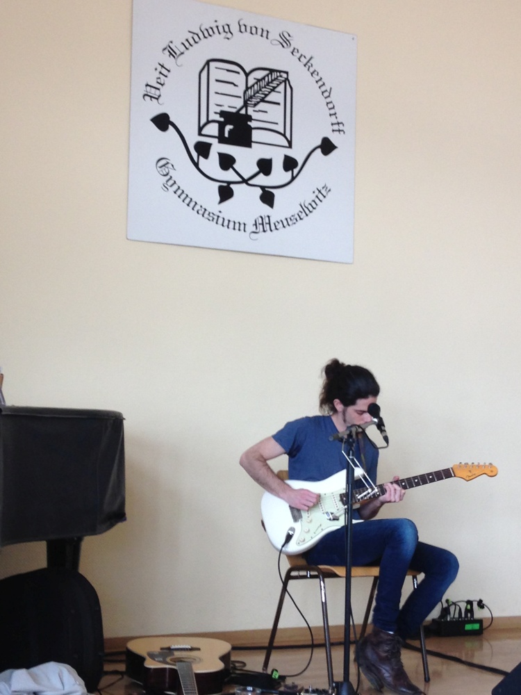 Am Montag, den 06.03.2017, wurde unsere Schule von dem israelischen Folk-Rockduo OMRI VITIS & GUY STRIER besucht. Die Veranstaltung fand in der Aula statt und ging insgesamt eine Stunde. Die Musiker spielten auf ihren Gitarren selbstgeschriebene Lieder von Omri Vitis vor, die uns gut gefielen. Guy Strier spielte auf einer E-Gitarre und begeisterte uns ganz besonders mit seinem Talent. Als das Konzert vorbei war, hatten wir alle noch die Möglichkeit Fragen zu stellen. Schüler der 10. , 11. und 12. Klassen hatten die einmalige Möglichkeit, dieses Konzert mit anschließender Fragerunde zu besuchen und alle Teilnehmer haben diese Veranstaltung genossen.