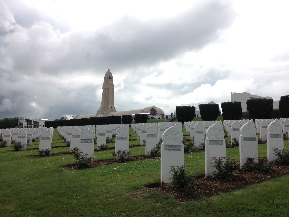 Um die Stadt Verdun besser kennen zu lernen, nahmen wir anschließend einen geführten Stadtrundgang vor. Dabei hatten wir sogar die Gelegenheit, den französischen Kriegsveteranenminister persönlich zu treffen und durften sogar ein Foto mit ihm machen. Am Nachmittag liefen wir trotz strömenden Regens und Gewitters zu den Schlachtfeldern und Schützengräben in Douaumont. Für uns waren das besonders beeindruckende Orte.