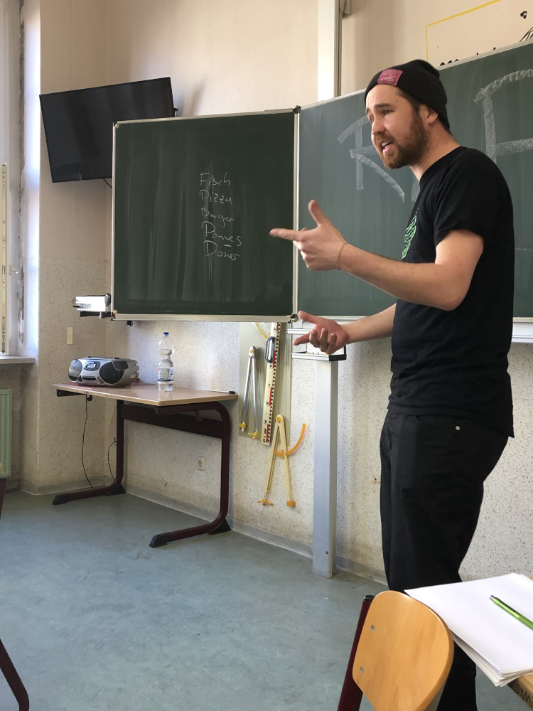 Beim Rapper Gregor ( Sayes) durften wir selber rappen mit unseren eigenen Ideen. Er bewies uns auch, dass er es drauf hat. Gregor hat uns viel über die Enstehung des Raps erzählt .