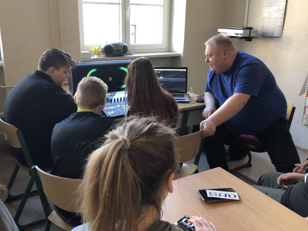 Als nächstes waren wir bei Kenny. Er hatte ein Mischpult mit einer großen lauten Box mit.Wir durften auch selbst Beats kreieren. Kenny hat berichtet uns, dass er schon viele berühmte Sänger in seinen Tonstudios hatte, wie Max Giesinger und Ben Zucker.