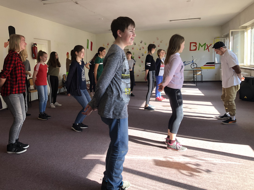 Dann waren wir bei Alex und Cate. Sie sind Tänzer. Wir haben einzelne Tanzschritte und auch was über Hip Hop gelernt. Am Ende studierten wir mit Cate und Alex eine Choreo ein. Es war ganz schön schwer, sich die Schritte alle zu merken.