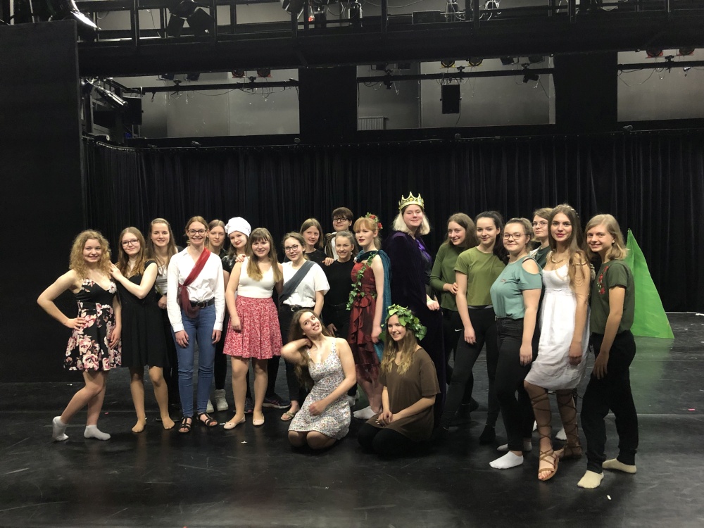 Wir besuchten verschiedene Workshops, geleitet von Schauspielern und Theaterpädagogen, die uns äußerst interessante Einblicke in die Welt des Schauspiels ermöglichten, und stellten uns gegenseitig Zwischenstände unserer vorbereiteten Stücke vor. Wir selbst präsentierten Auszüge aus Shakespeares ,,Sommernachtstraum“ in einer Bearbeitung für Schüler. Anschließen tauschten wir uns mit den Akteuren der anderen Schulen über unsere Aufführung aus und bekamen konstruktives Feedback. Für uns waren es sehr lehrreiche und produktive Tage. Wir danken unseren Lehrerinnen Frau Bayer und Frau Schmidt, die uns die Teilnahme ermöglichten.