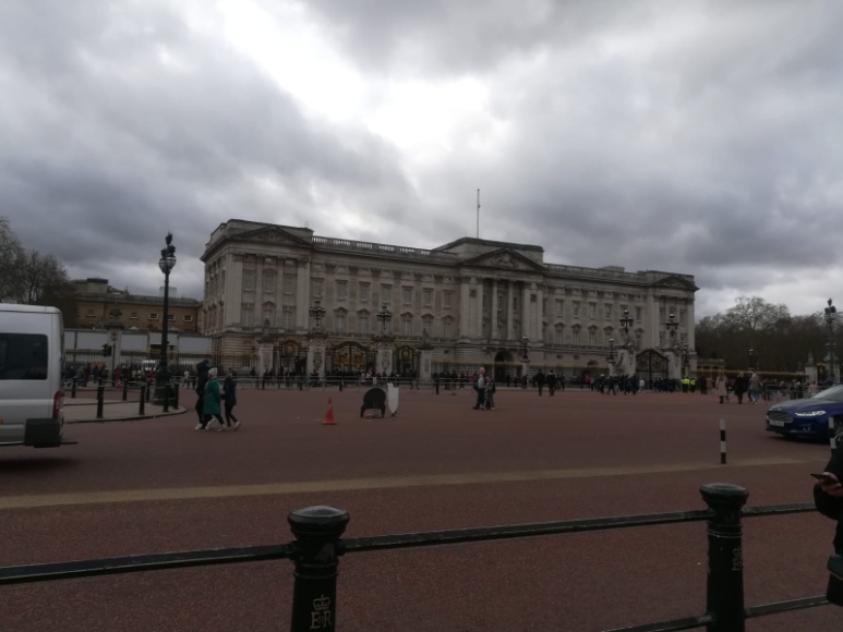 Diese führte uns unter anderem durch die Tower Bridge, am London Eye vorbei bis zum Big Ben, an dem wir ausstiegen. Aufgrund einer Friday for Future - Demonstration kamen wir nur sehr langsam zum Buckingham Palace voran. Dieser ist ein sehr imposantes Gebäude. Die Queen war leider nicht da, aber wir konnten die Wachen mit ihren tollen Uniformen bestaunen. Dies war ein ungewohnter, aber schöner Anblick, der uns sehr gefiel. Zum Abschluss des Tages erlebten wir Schauspielunterricht der besonderen Art. Wir führten im Globe Theatre mit einer Schauspielerin ein paar Sprachübungen mit Sätzen von Shakespeare durch. Sie führte uns dann auch noch durch das geschichtsträchtige Theater, wo wir in eine Probe für ein neues Stück hineinschnuppern durften. Geschafft wollten wir mit der U-Bahn zum verabredeten Treffpunkt fahren, um die Heimreise anzutreten. Doch mit dem Ticketautomaten gab es zunächst Schwierigkeiten. Der Ticketautomat nahm zwar unser Geld, wollte aber nicht mehr als 19 Tickets drucken. Keiner von uns konnte sich dies erklären. Doch dank des freundlichen Personals, erhielten wir unsere Fahrkarten. Das dafür notwendige Papier im Drucker war alle. Angekommen an der O² Arena, fanden wir unseren Bus nicht sofort. Als wir ihn dann endlich sahen, gab es für manche eine Bockwurst als Stärkung. Danach traten wir die Heimreise an, die sich als abenteuerlich und lang erweisen sollte.