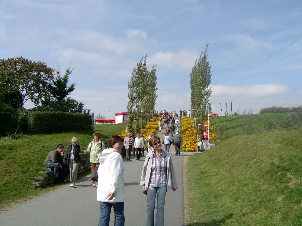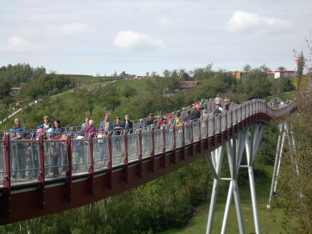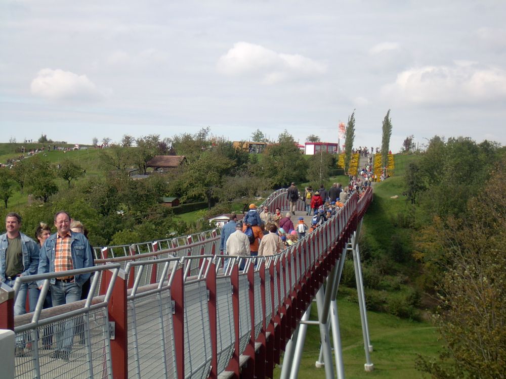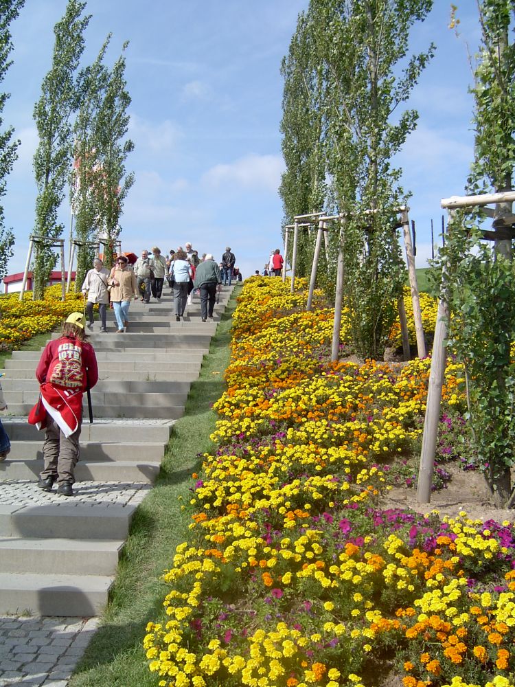 Danach konnten alle in kleinen Gruppen das ganze BuGa-Gelände „erforschen“. Es gab zwar sehr viele Blumenrabatten, aber auch viele Spielplätze und stände, wo man sich z.B. schminken lassen konnte. Unter anderem war auf dem Gelände ein Aussichtsturm, der ganze 21m maß. Auch auf der längsten Bank der Welt, die 600m lang war konnte man seinen Spaß haben. Zu dem anderen Teil des BuGa-Geländes gelangten wir über die Drachenschwanzbrücke.