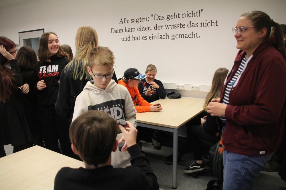 Den ganzen Tag über wurden wir auch von einem Media Team der TU Ilmenau begleitet, die Material für einen Werbefilm für die Jugenduni sammelten. Dazu waren wir ausgewählt worden, da Jenny Gräfe, ein Mitglied des Media Teams, auch früher an unserer Schule war.