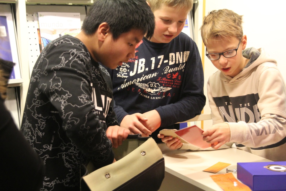 Die erste Station nannte sich Unikat, wo wir durch Schütteln von Filmdosen in einem interaktiven Memory den passenden Partner am Klang finden sollten. Sehr interessant gestaltete sich die Auflösung, als wir neben vielen anderen technischen Teilen auch das Rohmaterial für den 3-D-Drucker sahen sowie Boote und einen Eiffelturm als Ergebnis.