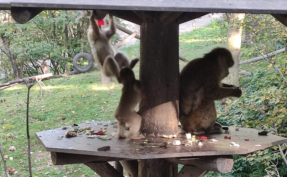 Wir entschieden uns für einen Ausflug in den Tierpark Gera. Mein Highlight war neben der Parkeisenbahn das große begehbare Affengehege. Ein Jungtier der Affen konnte bereits genauso gut klettern wie die größeren.