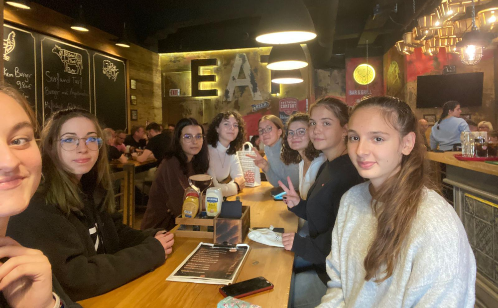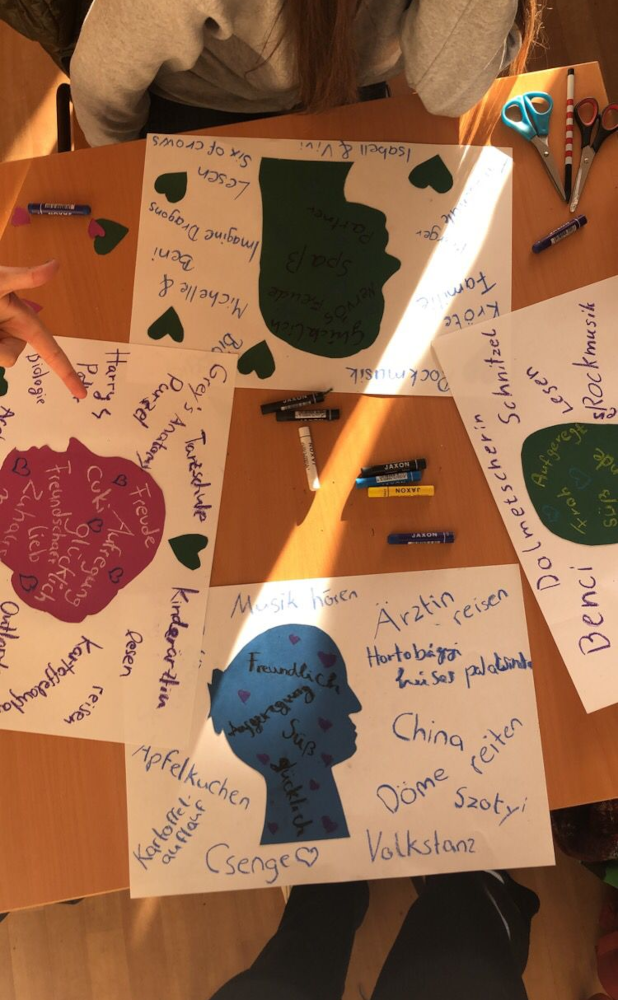 Wir, Helene, Lilly, Tabea und Adel fuhren mit unseren Partnerinnen, Abigél, Dorina, Virág und Gerda, nach Leipzig. Dort machten wir mit ihnen eine kleine Stadtführung und stellten dabei die wichtigsten Sehenswürdigkeiten vor.