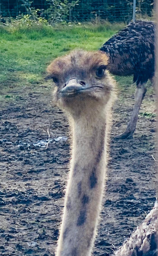 Nach dem Essen sahen wir uns die Tiere der Farm an, wobei viele von uns eher gemischte Gefühle hatten, da ein junger Strauß, trotz der niedlichen, langen Wimpern, sehr beängstigend wirken kann.