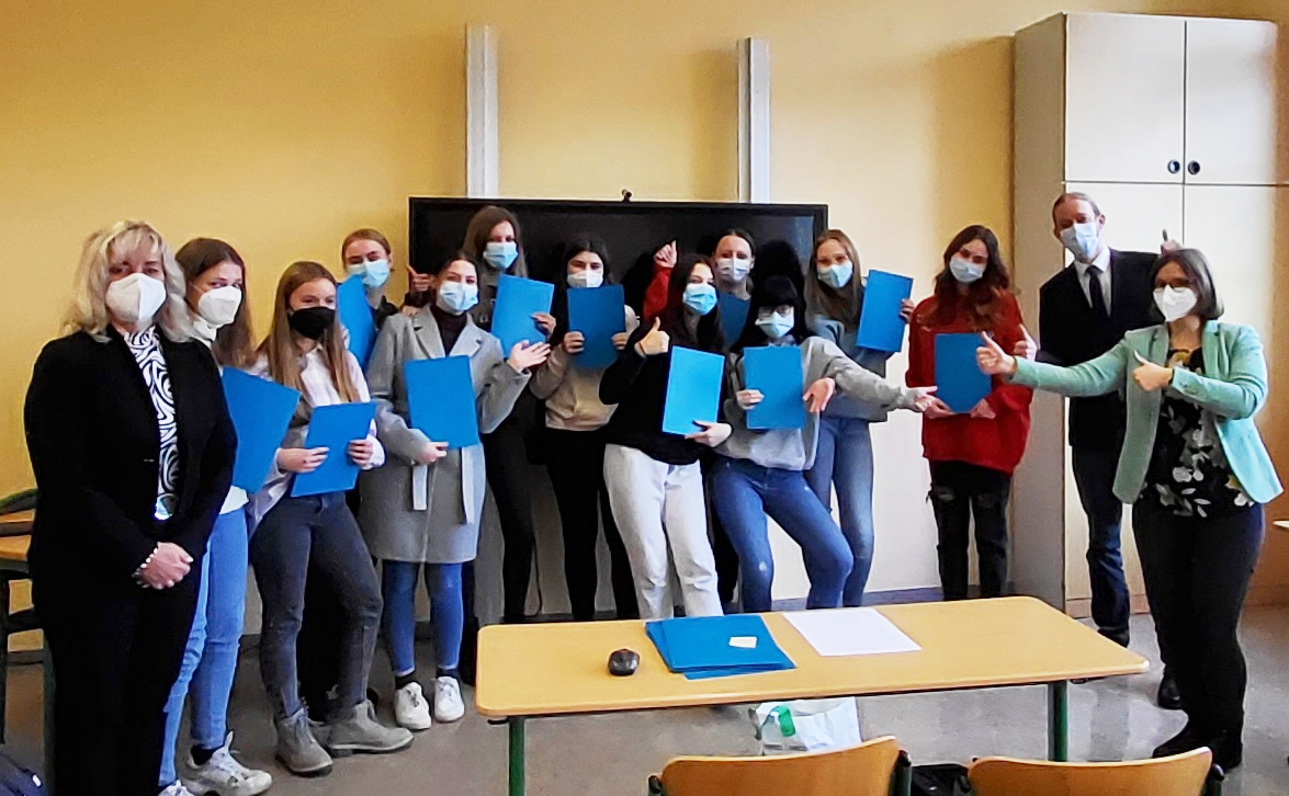 Am 10. Dezember 2021 war es endlich soweit und die Preisverleihung fand in unserer Schule statt. Herr Jan Fiete Müller vom TMBJS war gekommen, um uns den Preis zu überreichen. Dank des tollen Gewinnes können wir nun unsere Sprachkenntnisse im Ausland erweitern.