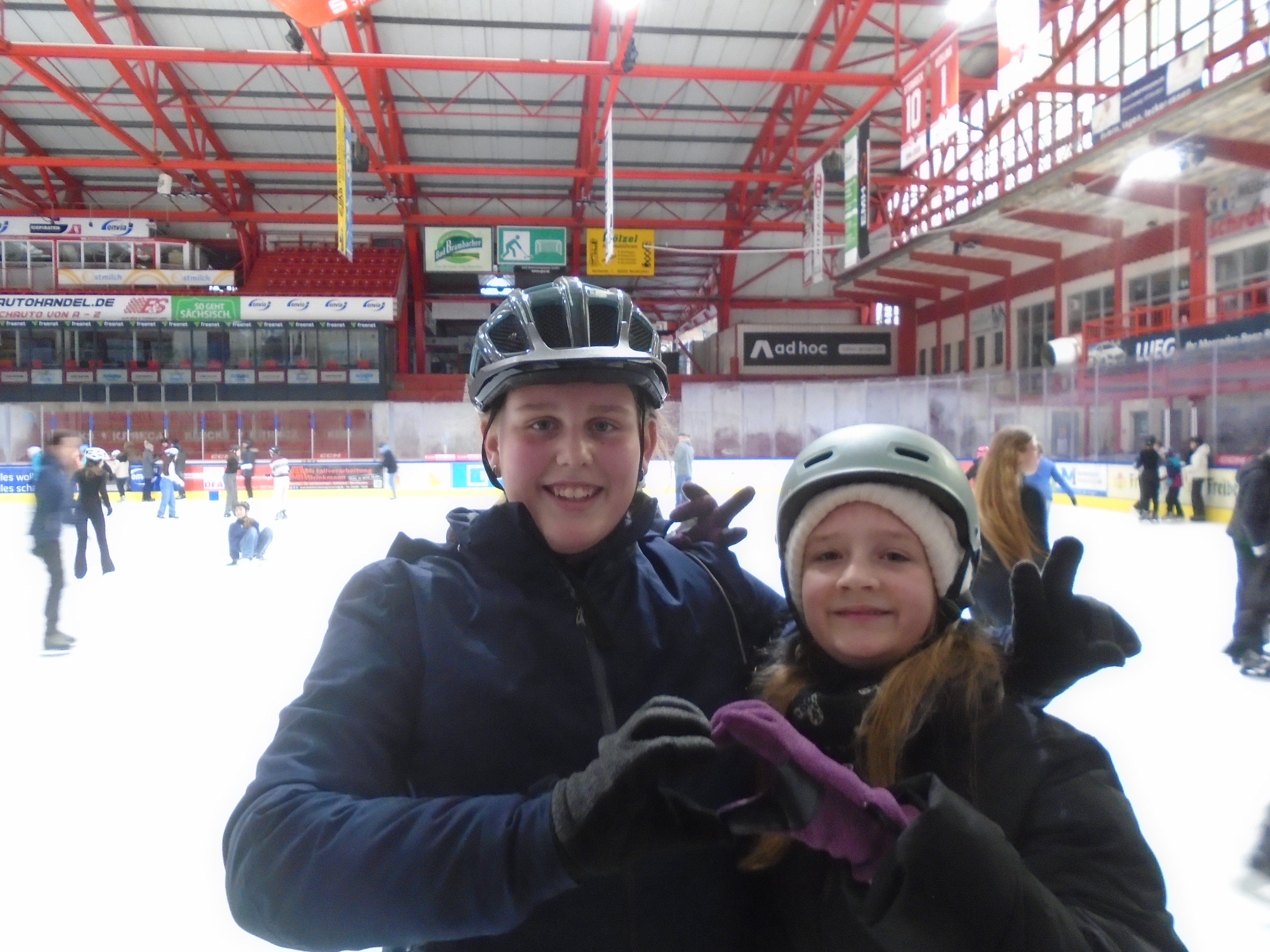 "Unsere Klassenstufe 6 und die 7 b waren am 10.12.2025 in der Eishalle in Crimmitschau, bei den Eispiraten. Wir sind früh am Morgen mit dem Bus losgefahren und danach direkt in die Eishalle gegangen. Wir hatten sehr viel Spaß und es gab auch ein paar kleine Verletzungen. Anschließend erlebten wir eine Rundführung durch die Halle oder die Kabine und erfuhren ein bisschen über die sportliche Geschichte des Vereins. Später sind wir auch mit demselben Bus wieder nach Hause gefahren. Dieser Ausflug war sehr lehrreich."
