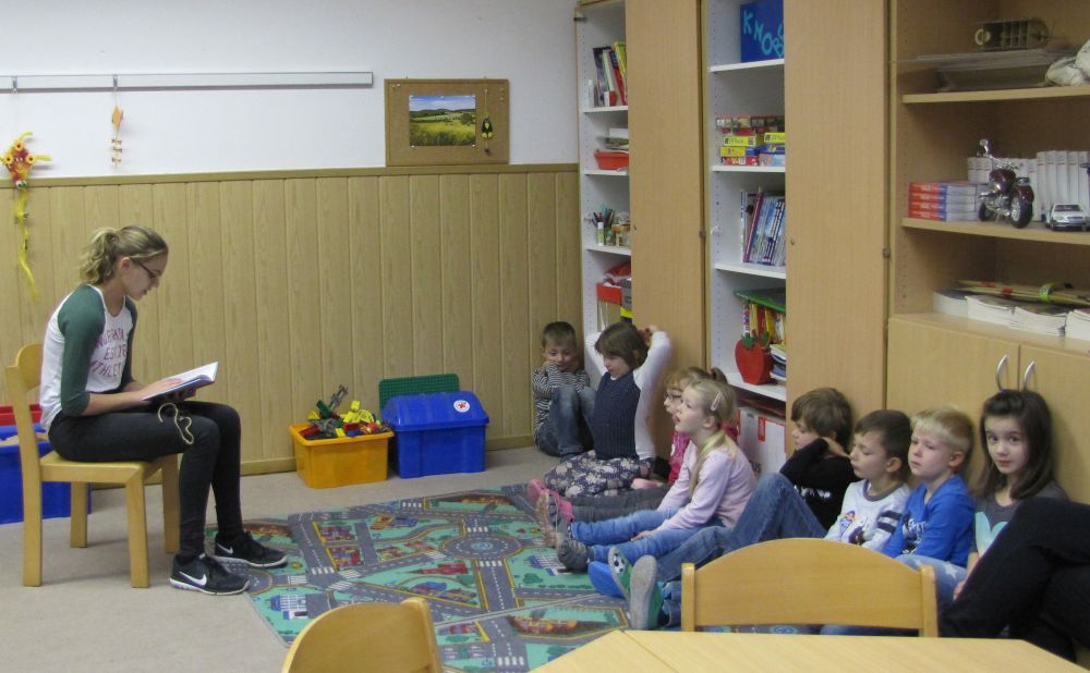 Am 18.11.2016 besuchten die Schülerinnen des Kurses Darstellen und Gestalten Klasse 9 die Grundschulen in Meuselwitz, Lucka, Wintersdorf und Posa, um den Kindern der Klassen 1 bis 4 aus selbst ausgewählten Kinderbüchern vorzulesen. Requisiten, Rätsel und kleine Spiele ergänzten diese sehr gelungenen Lesebeiträge und die jungen Zuhörer waren begeistert. Ziel dieser jährlichen bundesweiten Aktion ist es, bei den Kindern Interesse für das Lesen zu wecken und ihre Phantasie anzuregen.