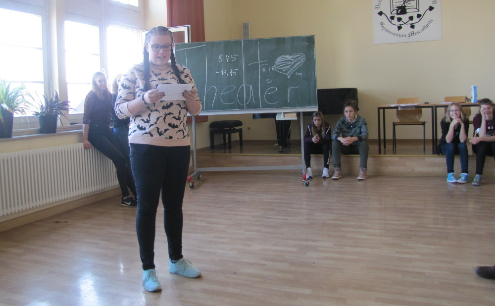 Am Freitag, dem 25.11.2016, fand ein Workshop zum Thema Darstellendes Spiel in der Aula unseres Gymnasiums statt, bei dem die Schüler der 9. Klasse aus dem Unterrichtsfach Darstellen und Gestalten beteiligt waren.