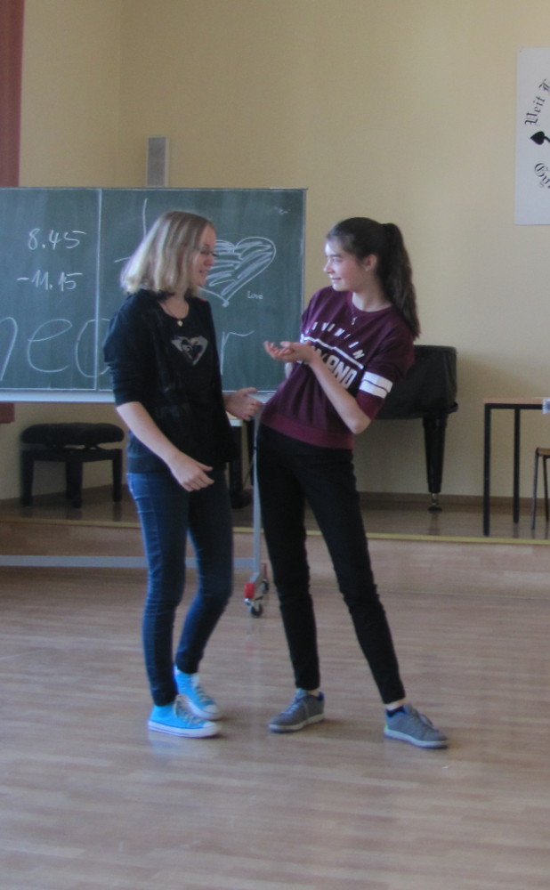 So mussten wir unter anderem mithilfe von Blicken kommunizieren oder uns verschiedene Möglichkeiten der Vortragsweise eines Stückes ausdenken. Jeder war mit Eifer dabei und fasziniert von den verschiedenen Facetten des Theaters. Wir hatten alle viel Spaß und bedanken uns in diesem Sinne ganz herzlich bei Herrn Schönherr und Frau Bayer für diese lehrreiche Zeit.