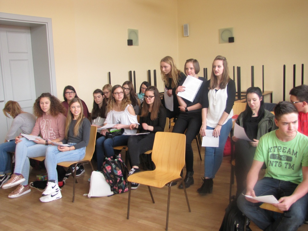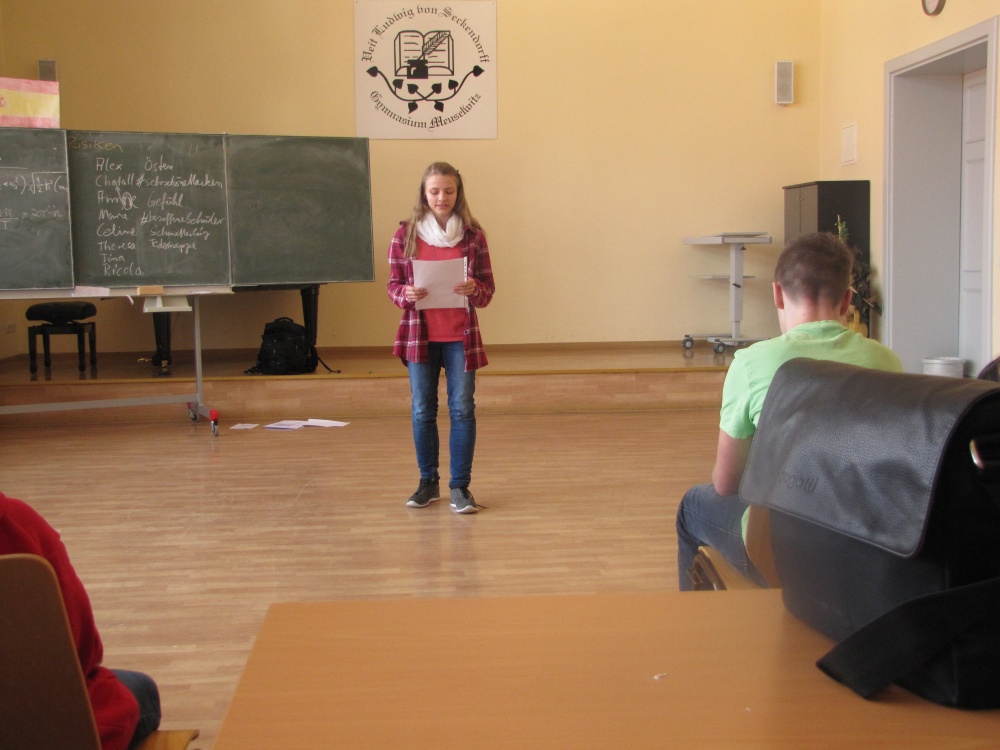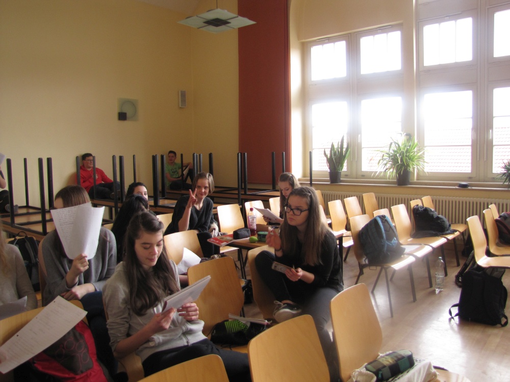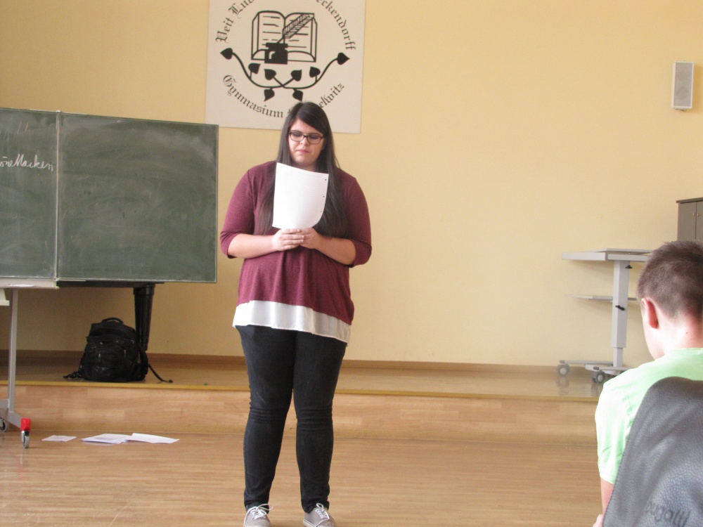 24 Schüler aus unterschiedlichen Klassenstufen nahmen erfolgreich teil. Mit vielen Übungen zum Texteschreiben und betonten Präsentieren bereiteten wir uns für unseren großen Auftritt vor. Dieser wurde von allen mit Bravour gemeistert und das Publikum war begeistert. Danke nochmals an AIDA, der uns wirklich fantastisch mit lustiger und guter Stimmung durch diese Veranstaltung geleitet hat.