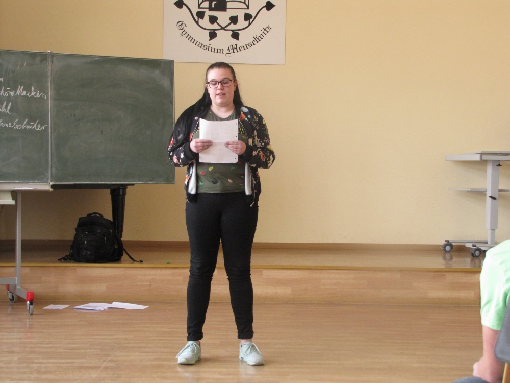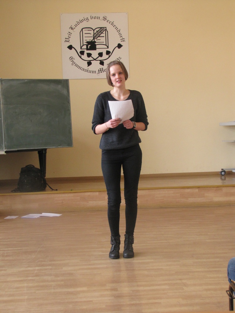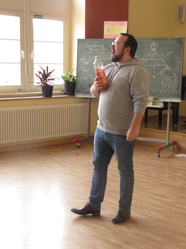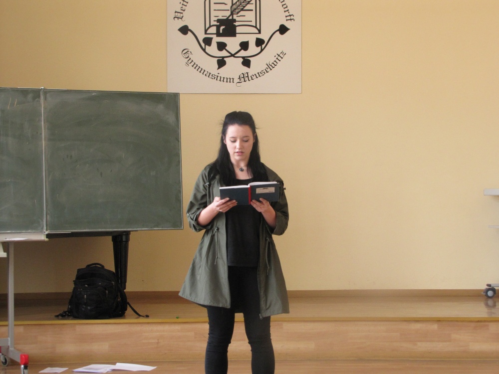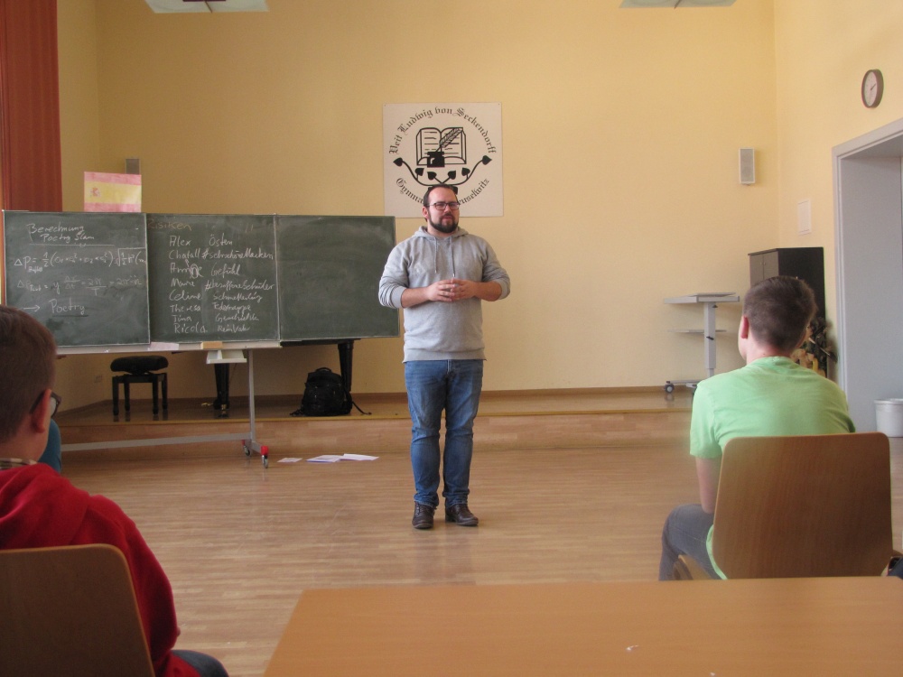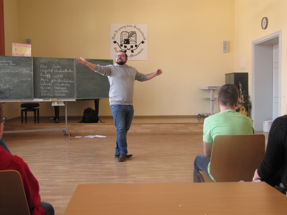 Im Rahmen des Kulturagenten- Programms startete am 8. und 9. März ein Poetry Slam Workshop am Veit-Ludwig-von-Seckendorff-Gymnasium Meuselwitz. Professionelle Betreuung erhielten wir hierbei von Andreas in der Au (AIDA), dem bekannten Slamer ,der uns viel beigebracht hat.
