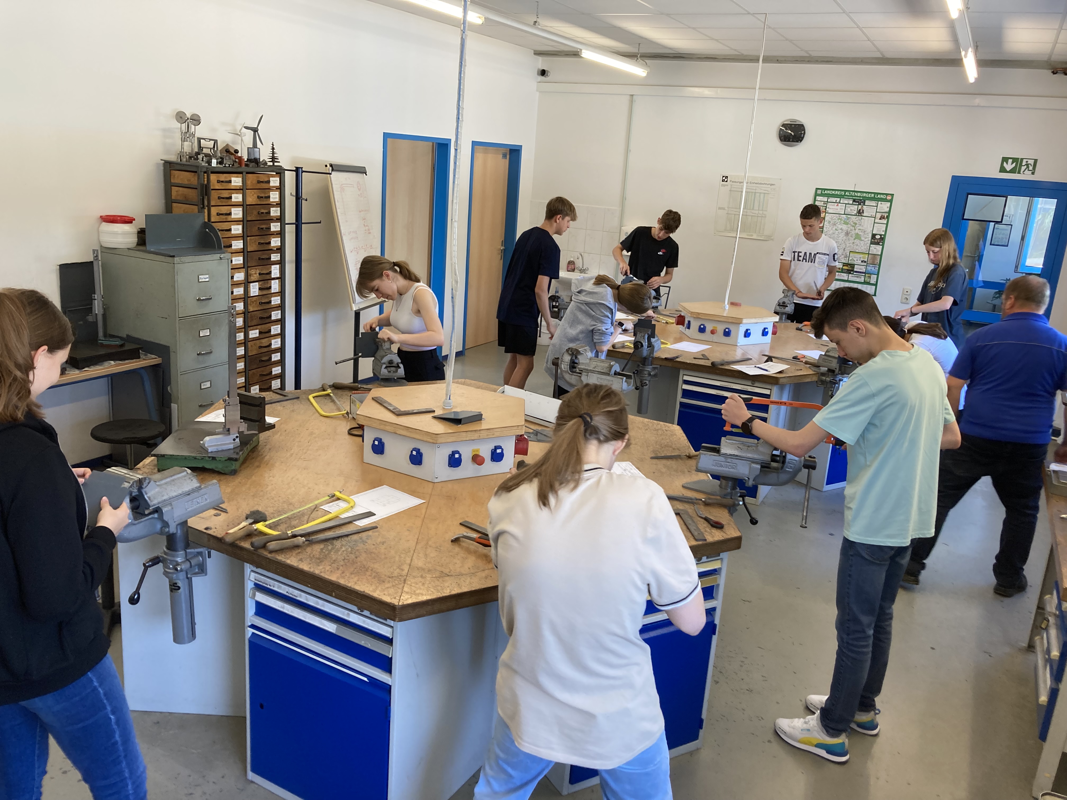 Letzteres fand in der Woche vom 26. bis 30.06.2023 bei unserem langjährigen Partner, dem AWA e.V., in Altenburg statt. Innerhalb von fünf Tagen erkundeten dort unsere SchülerInnen Berufsfelder in den Bereichen Elektrotechnik, Metallbearbeitung, Kunststofftechnik, Informatik und 3-Druck. Hierbei wurde wie immer das Konzept Learning by doing großgeschrieben.